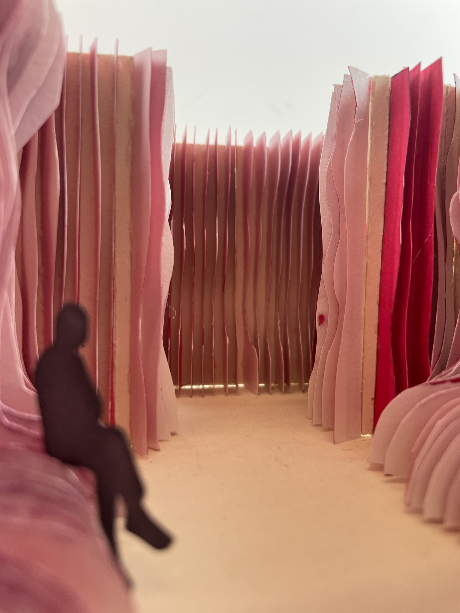 Ainsi, la proposition implique une expérience immersive du client au cœur de magasin mais aussi au cœur de la marque puisque le jeu des couleurs blanches et rouges, typiques de l'identité visuelle de Camper, s'expérimente à travers un parcours dans le magasin.