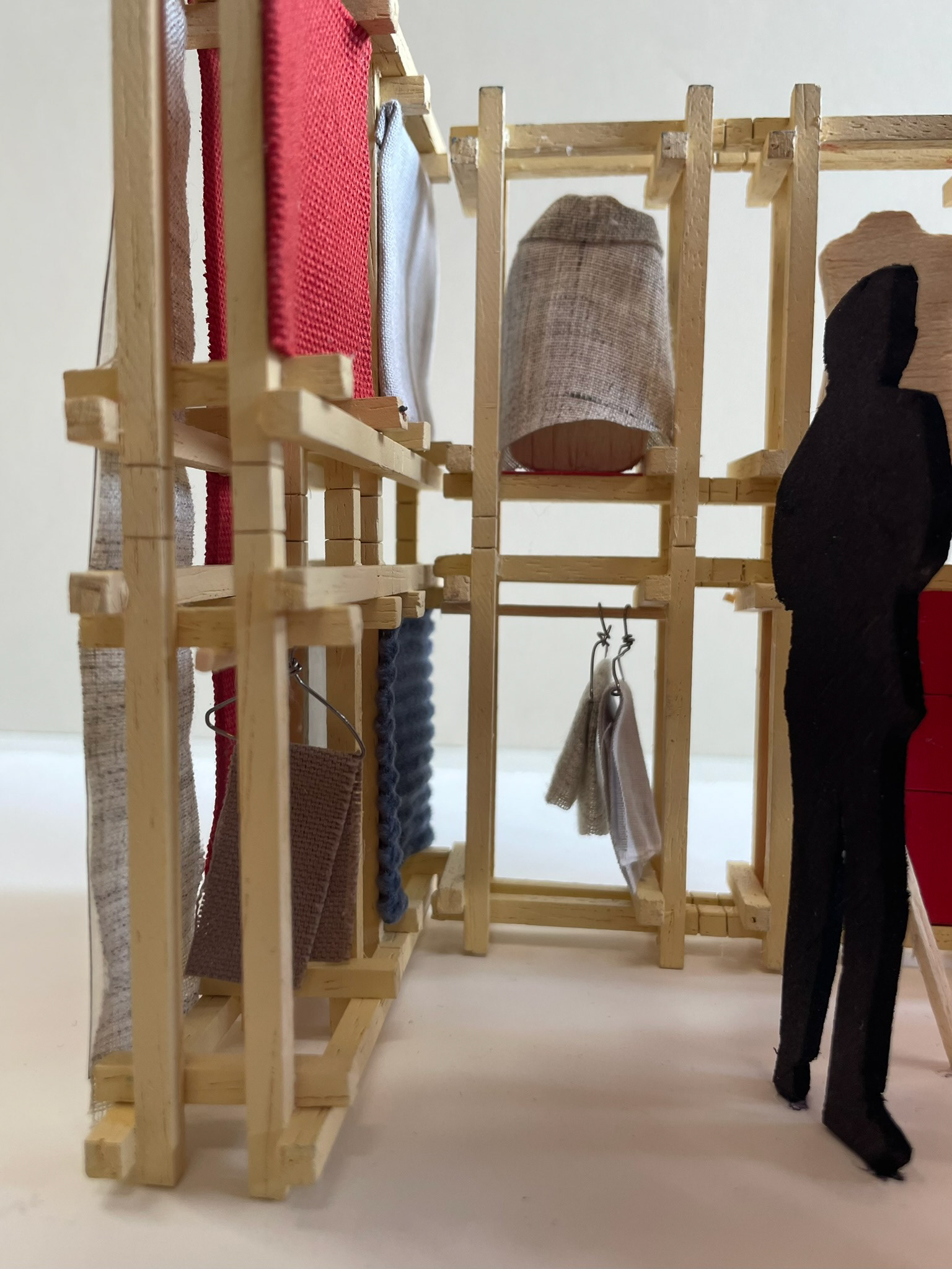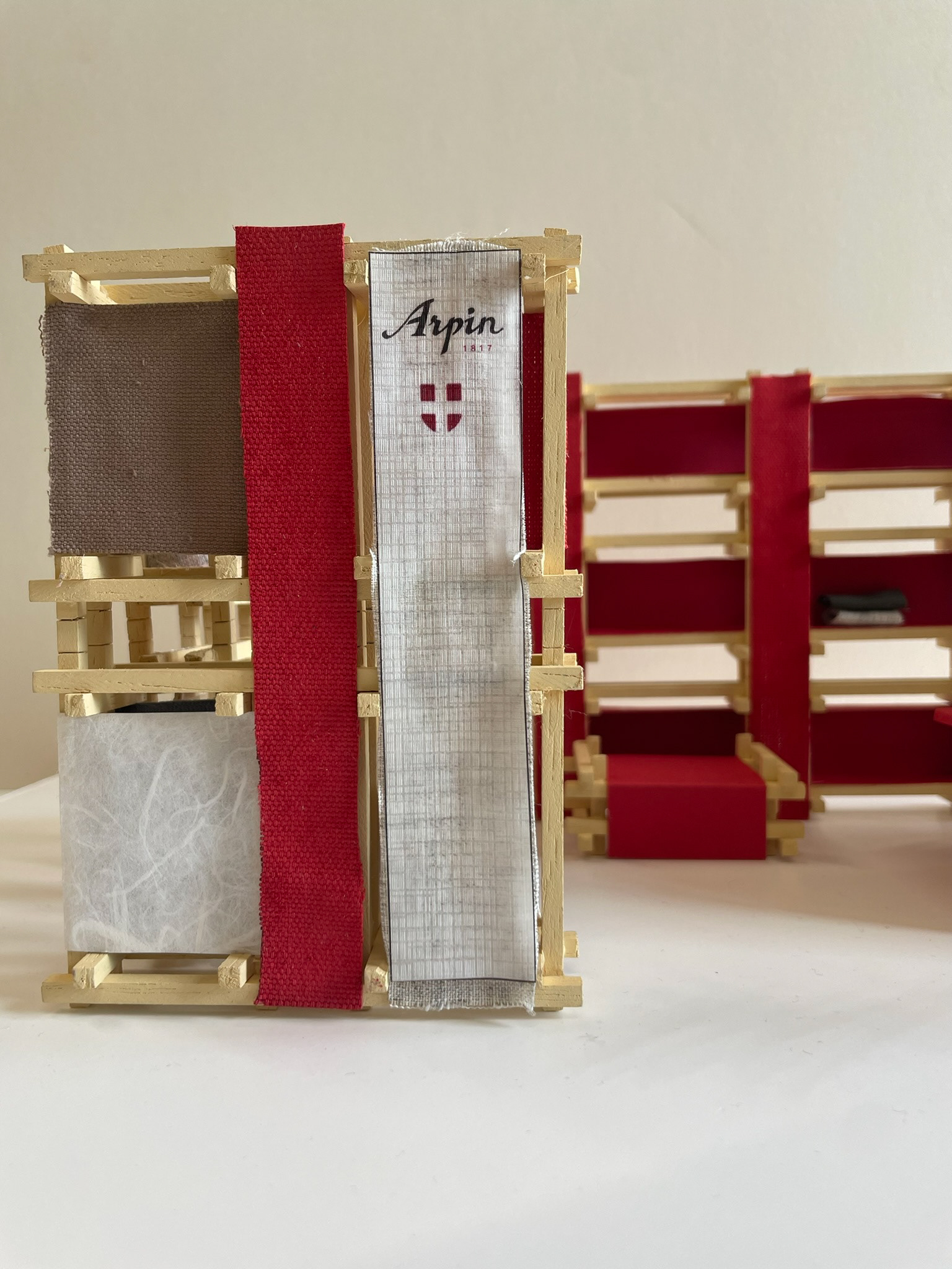 Dans le cadre du salon Première Vision à Paris, rassemblement d’exposants et artisans dans le monde du tissu, ce projet a pour but de proposer un aménagement de stand possible. Ce dernier pourra être personnalisé selon une marque donnée (ici Arpin 1817) mais aussi compatible pour d’autres éventuelles marques.